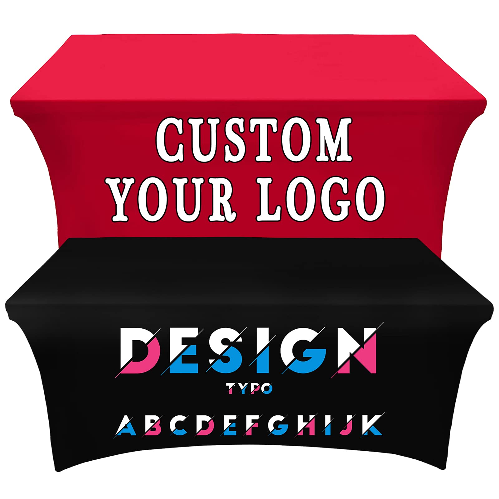 Our standard 4 sided table cover is a great table topper for trade shows, exhibitions, and any presentations. Our table covers are dye sublimated and are 100% washable. This table cover is made of 7 oz. polyester with rounded corners and hangs approximately 2″ above the floor. This material drapes over 4 sides of a 72″ x 30″ x 30″ display table. Complete your presentation with our simple and cost-effective table cover.